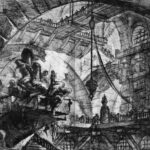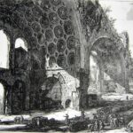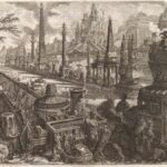 Printmaker, engraver, and antiquarian Giovanni Battista Piranesi once said: “I need to produce great ideas, and I believe that if I were commissioned to design a new universe, I would be mad enough to undertake it.” This would prove an apt description of the fantastical architectural prints he became famous for. An ardent lover of Roman, Greek, and Egyptian architecture, Piranesi was the son of a stonemason and builder, and first studied drawing with his uncle, an engineer. (In fact, Piranesi considered himself an architect.) His drawings and etchings demonstrate a sophisticated ability in manipulating perspective and architectural elements for dramatic effect. Piranesi’s subjects not only included imaginings of ancient buildings, but also ominous prisons and mysterious ruins. His works were so popular that the prints were sold to Grand Tourists even after his death.